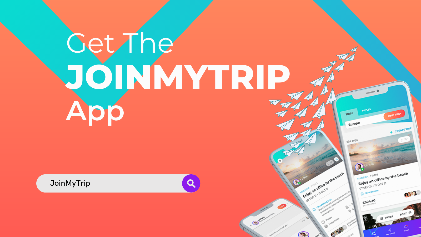 Mit der JoinMyTrip App habt ihr die ganze Welt in eurer Tasche. Erstellt oder bucht Trips zu Reisezielen überall auf der Welt und teilt Reisekosten und Erfahrungen mit gleichgesinnten Reisenden. Euer Glück ist nur einen Download entfernt.