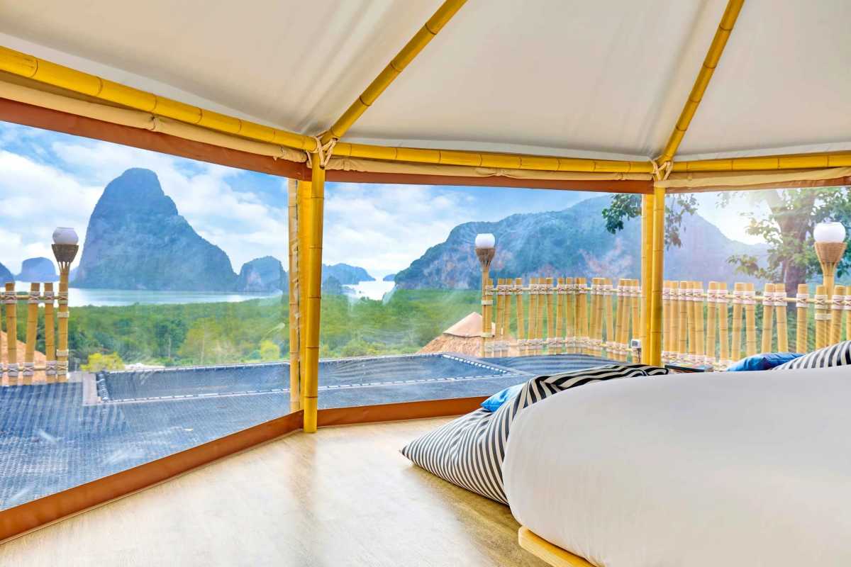 Am Morgen brechen wir auf zu einem ganz besonderen Etappenziel,:dem spektakulär gelegenen Beyond Skywalk Nangshi Hotel. Nach einer etwa vierstündigen Autofahrt durch eindrucksvolle Landschaften erreichen wir diese außergewöhnliche Unterkunft, die uns mit einem atemberaubenden Panorama auf die weltberühmte Phang Nga Bay begrüßt. Der Blick reicht über smaragdgrünes Wasser, bizarr geformte Kalksteinfelsen und dichte Mangroven – ein Anblick, der einem den Atem raubt. Doch die Lage ist nicht das einzige Highlight: Unsere Nacht verbringen wir in stilvoll eingerichteten, luxuriösen Zelten, die den perfekten Spagat zwischen Komfort Inmitten der tropischen Umgebung erleben wir Glamping auf höchstem Niveau – ein unvergessliches Erlebnis, das unserer Reise einen Hauch von Abenteuer und Exklusivität verleiht. Nach dem Check-in geht es direkt weiter mit dem nächsten Höhepunkt: Wir steigen in ein Boot und lassen uns durch die faszinierende Inselwelt der Bucht treiben. Dabei besuchen wir das charmante, auf Stelzen errichtete Fischerdorf Koh Panyi, das von einer moslemischen Gemeinschaft bewohnt wird, und erkunden anschließend die weltberühmte James Bond Island, bekannt aus dem Filmklassiker „Der Mann mit dem goldenen Colt“. Die dramatischen Felsformationen und das smaragdgrüne Wasser lassen uns staunen und tief in die Magie Südthailands eintauchen.