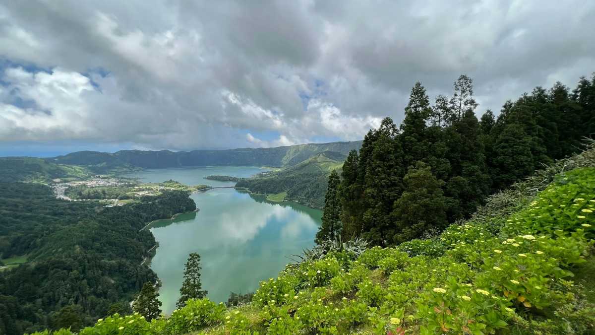 Today we will visit East part of Azores: Vila Franca do Campo Lagoa das Furnas Furnas Caldeira das Furnas Parque Natural da Ribeira dos Caldeiroes Plantacoes de Cha Gorreana Miradouro de Santa Iria Parque Terra Nostra