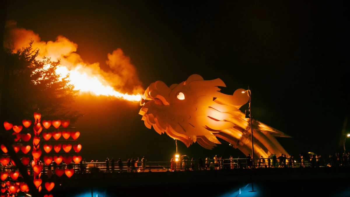 Dragon Bridge Night & Dinner Cruise 🌉 When night falls, Da Nang lights up - especially the Dragon Bridge. Every weekend, the dragon breathes real fire and water in a show that lights up the river. We’ll watch it from a dinner cruise, floating between city lights and music and plates of local food.